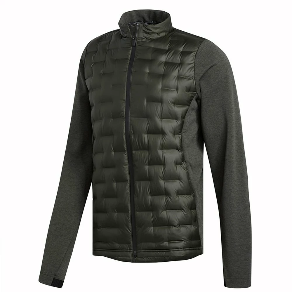 Stay sharp and warm with the adidas FrostGuard Insulated Jacked. The jacket features soft fleece lining in the sleeves and quilted down insulation in the body to keep you warm in cool weather. The quilting has bonded seams for added warmth and a lightweight feel while the knit arms, back and side panels allow for unrestricted movement and a smooth swing. A water-repellent finish sheds light rain, so you can play through in damp weather.