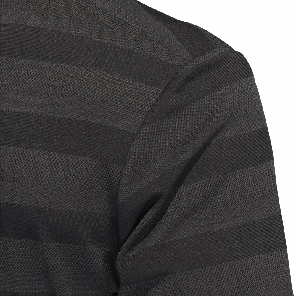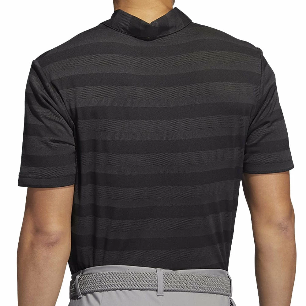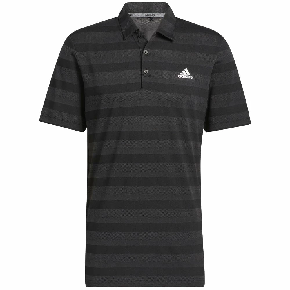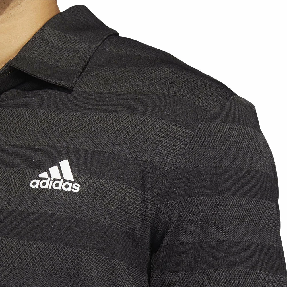There is an all-over stripe print throughout the garment for added style, with a 3-button polo collar and adidas logo on the left chest.