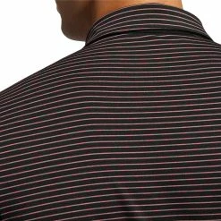 The polo is designed with four-way stretch fabric, breathability and moisture wicking fabric to keep you comfortable on the golf course along wing a factor 50+ UPF rating.