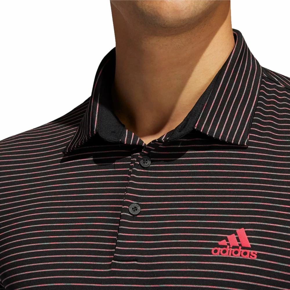 The adidas Ultimate365 Space Dye Striped Polo Shirt is designed for all year play. Step onto the green, breathe deeply and swing freely with this stretch fabric polo shirt and head back to the clubhouse feeling dry and comfortable after a day of play at the course.
