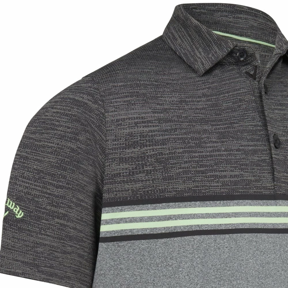 The garment is finished with a 3-button placket and stripe chest design for added style. As a subtle nod to the brand, there is a small Callaway logo on the sleeve.