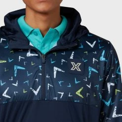 The pullover is finished with the signature Callaway chevron printed over the chest and sleeves of in various colours, adding a cheerful twist to the design that makes it work just as well off the course. An attached hood helps to protect your head from the wind and rain.