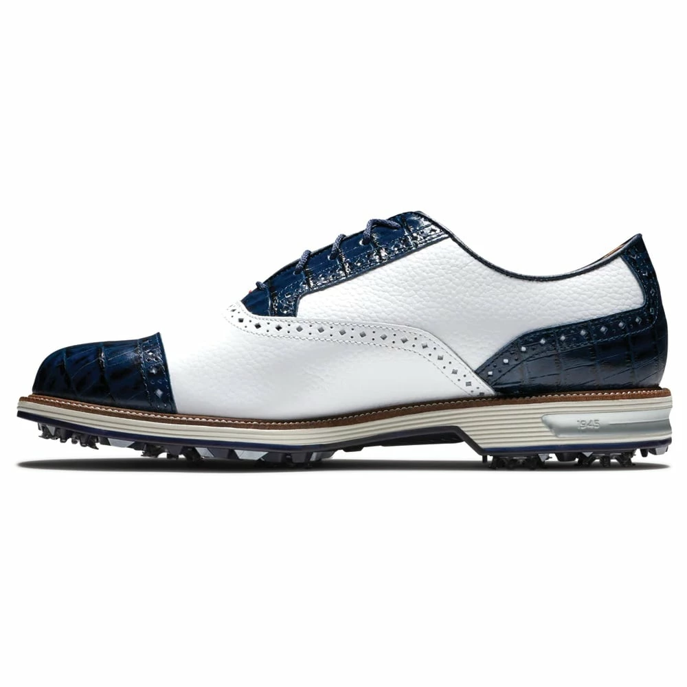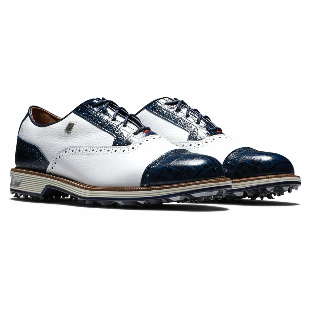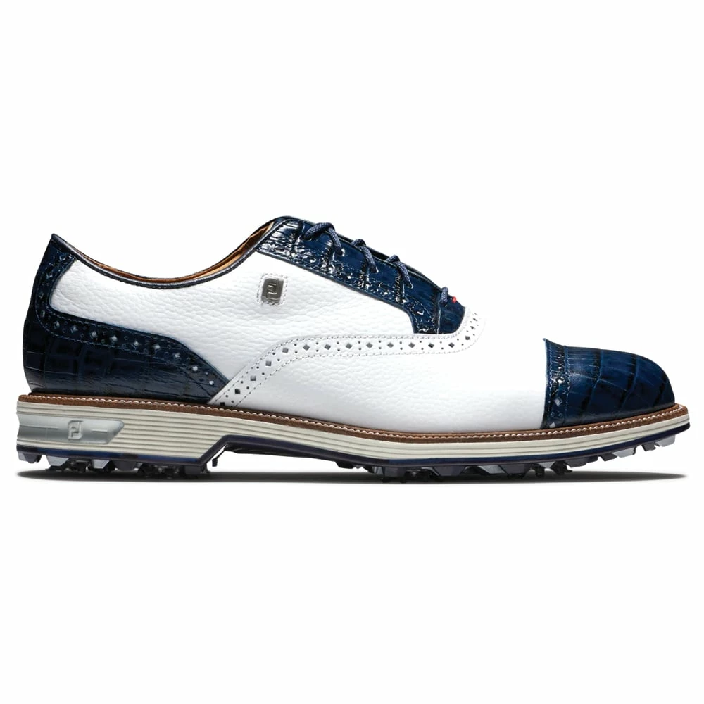 Offering a classic look, the FootJoy Premiere Series Tarlow brings together golfers seeking to wear iconic golfing footwear. Premium, hand-selected, soft grain leather and luxurious calfskin details create the classic look, combined with the super-soft, supple sheepskin lining provide excellent feel and comfort. The firmer density cup around the heel provides perimeter heel support and stability through each swing while the OrthoLite EcoPlush FitBed cushioning system reduces walking fatigue providing all day comfort and performance.