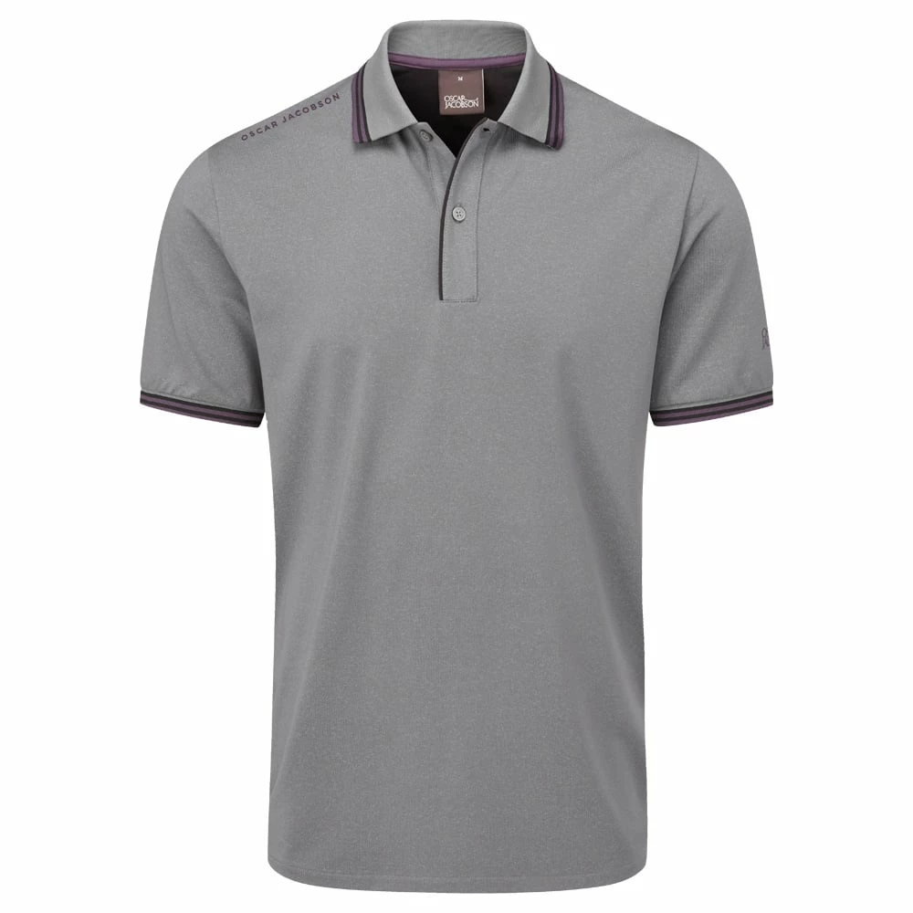 Contrast coloured stripe details on the collar, sleeves and placket add to the modern design, alongside a melange dye and Oscar Jacobson branding.