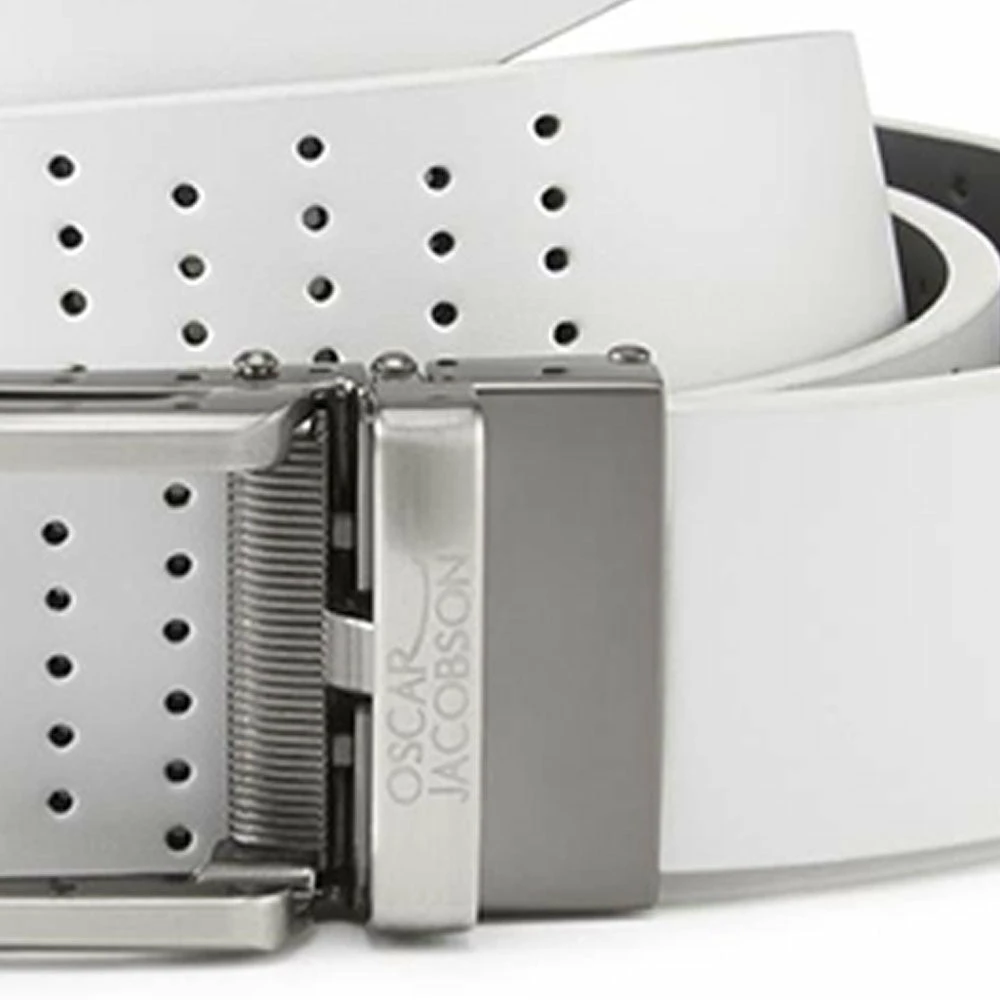 Classic leather belt design with modern punctured hole twist, with Oscar Jacobson branded logo on the metal belt buckle and imprinted into the leather tongue you will have a fashionable item suitable for any occasion.